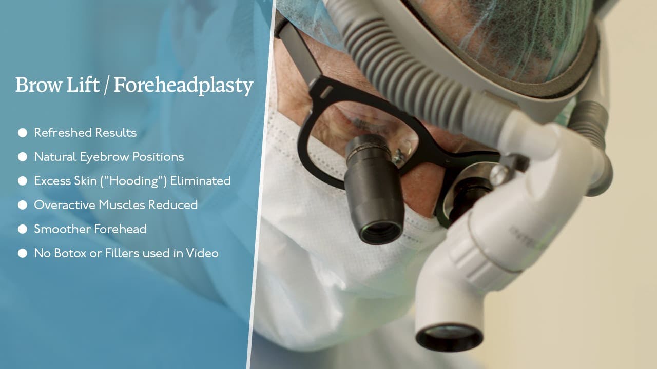 A brow lift is a customized facial surgery that smooths deeper, visible brow creases, lifts the brow to a youthful location, or corrects a heavy or overhanging brow.
